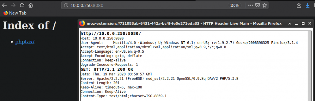 Next, I tried putting some PHP code in the User-Agent: