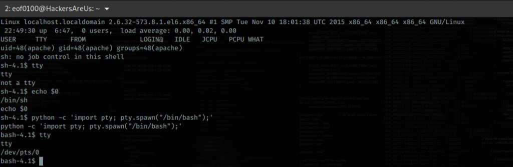 Here’s the command I used to spawn the TTY shell: