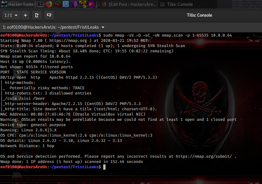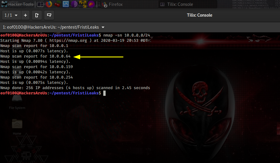 I begin by using nmap’s ping sweep and netdiscover to find the IP of the target host.