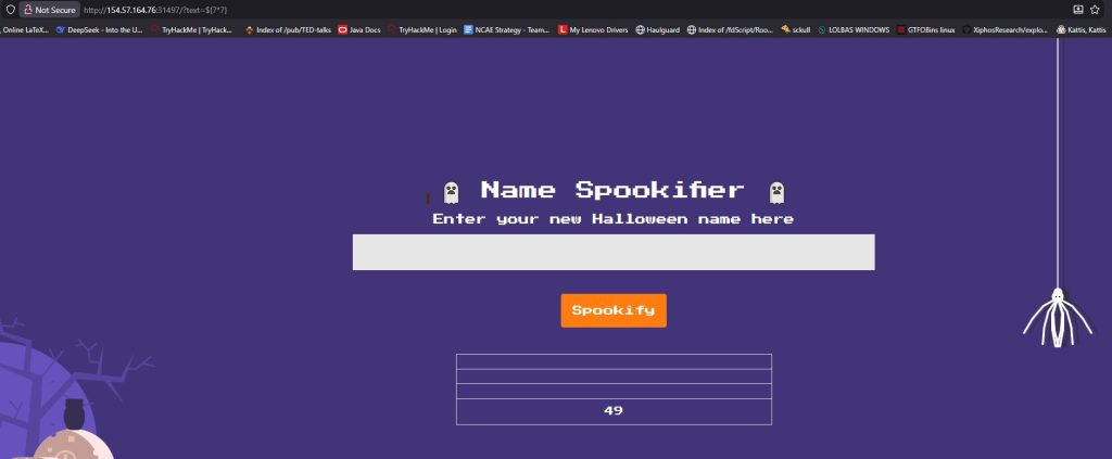 We are given target host IP address and port number along with a zip file called Spookifier.zip (30 KB) and a password of “hackthebox”. Extracted the contents then visited the site. Looks like it’s a simple input box that outputs users input in different font format.